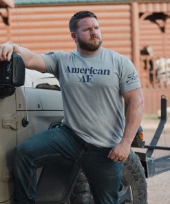 We took that soft, clean-cut look and hit it with a shot of bourbon, a blast of freedom, and a whole lot of attitude. The American AF T-Shirt in Dark Heather Gray is what happens when stars, stripes, and sarcasm collide with that all-too-familiar preppy vibe—only now it’s packing heat and never skips leg day.