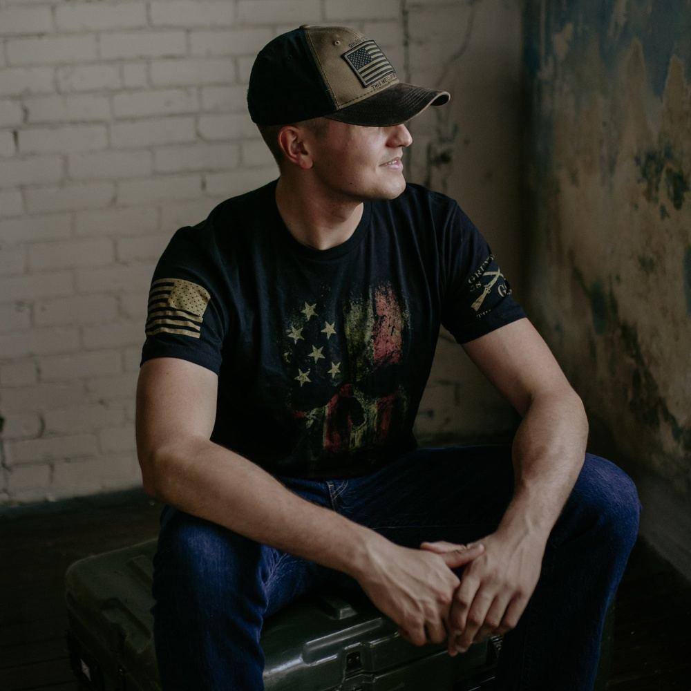 This American Reaper graphic tee is built tough with high-quality cotton and features the classic Grunt Style reaper design, embodied in the flag of the United States. With this men’s Grunt Style graphic tee, you will be able to carry through any mission to defend our freedoms and punish the bad guys.