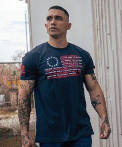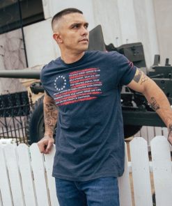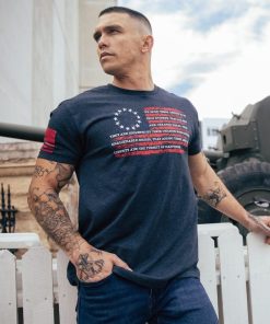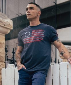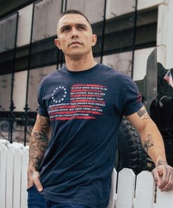 The Declaration T-Shirt in Midnight Navy fuses Old Glory with the original blueprint of American liberty. Featuring the U.S. flag where the stripes are the powerful words of the Declaration of Independence, this tee is a walking reminder that our freedom was forged on courage and conviction.