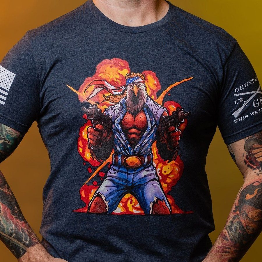 When America calls, Eagle Fury answers with patriotic fists and rounds of freedom seeds. This midnight navy tee is packed with muscle, mayhem, and fury so intense it probably bench-presses tanks for breakfast. Built for the bold, this shirt is for those who know that freedom doesn’t knock—it kicks the damn door down.