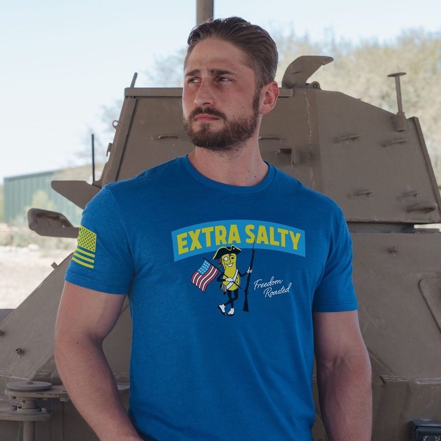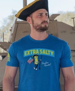For those who like their humor roasted and their freedom extra salty, the Extra Salty T-Shirt in Royal brings the perfect blend of comedy and patriotism. Featuring the bold design “Freedom Roasted”, this shirt celebrates your extra salty attitude and unwavering love for liberty.