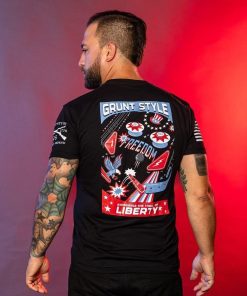 Life’s a game—so play it with style and a whole lot of freedom with Grunt Style. The Free Ballin’ Grunt Style T-Shirt in Black, is here to remind you that liberty is a thrill, and you’re in it to win it. This patriotic shirt combines the excitement of the classic pinball game with the untamed spirit of freedom.