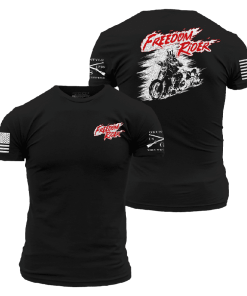 When the road calls, only one thing rides harder than the machine beneath you—your freedom. The Freedom Rider T-Shirt in Black is built for the ones who live wide open, throttle twisted, wind in their face, and the Constitution in their back pocket.