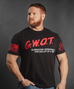 Show your pride for those who served during The Global War on Terror (GWOT) with this bold T-shirt. Featuring a retro design that pays tribute to all those who served, this black tee honors the bravery, sacrifice, and dedication of those who fought to protect our freedom. Made for those who love eliminating terrorists, one at a time.