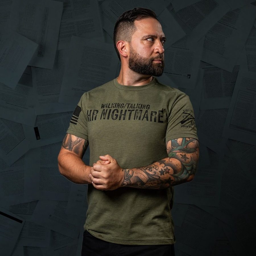 The HR Nightmare T-Shirt in Military Green is for those who know how to shake things up and keep everyone on their toes. This shirt is made for the bold, the rebellious, and the ones who might just be the reason HR has a few extra coffee breaks. This Grunt Style Tee was made for your inner HR nightmare. (We Dare You – wear it to work!) Wear it loud, wear it proud—because you’re the Walking, Talking, HR nightmare they’ll never forget!