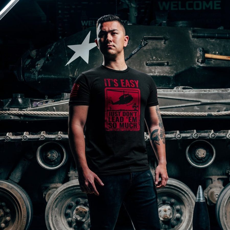 Locked, loaded, and deadly accurate — sometimes hitting your mark is simpler than people think. It’s easy, you just don’t lead ’em so much. This tee throws a nod to that no-nonsense trigger-puller mindset, built with the same grit and dark humor carried by the toughest warriors. It’s not just a shirt, it’s an attitude: precision, confidence, and zero hesitation.