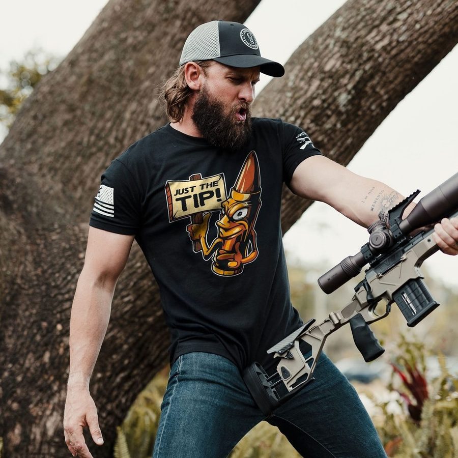 Let’s be real—subtlety isn’t really our thing. The Just The Tip T-Shirt in Black fires off a round of dark humor with pinpoint accuracy, combining your love of freedom, firearms, and a good ol’ punchline. This design features a bold bullet graphic and a line that hits harder than your favorite rifle. Just the tip? That’s all it takes when freedom’s on the line.