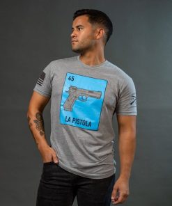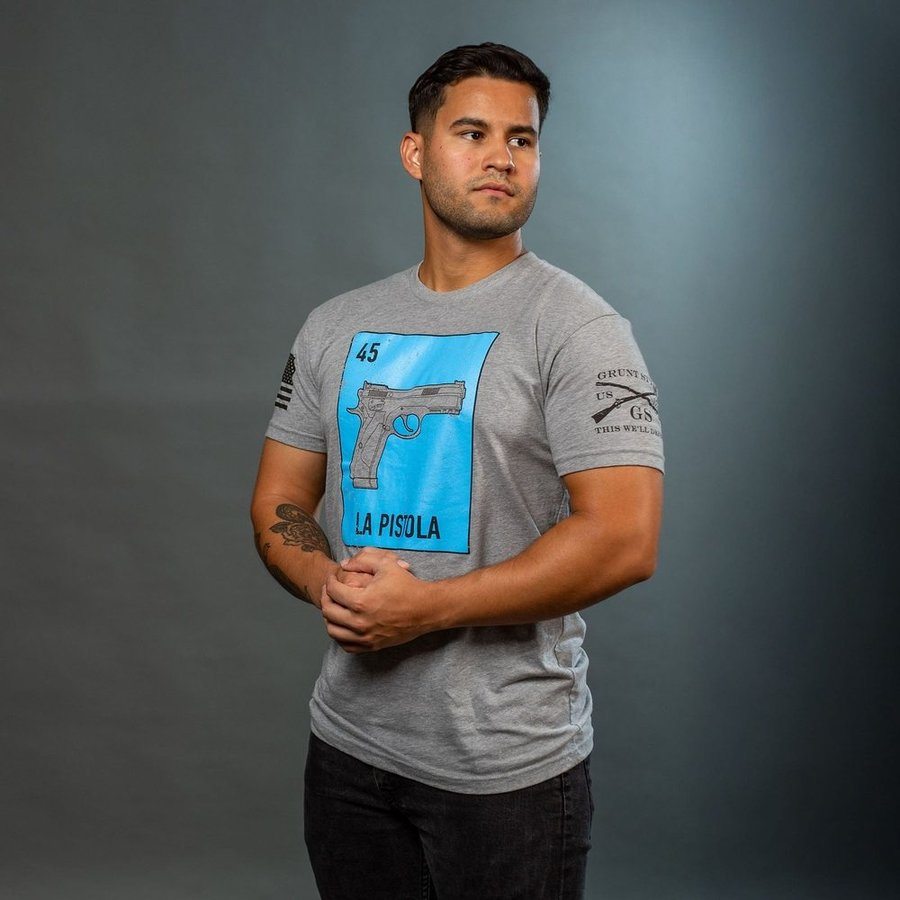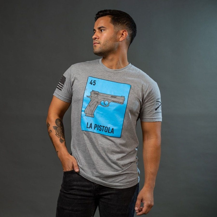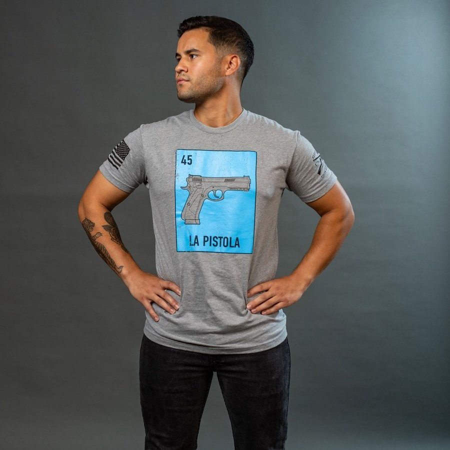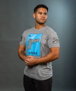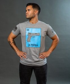 Show your pride for the Second Amendment with a dash of humor in our La Pistola T-Shirt in Dark Heather Gray. This Lotería-inspired design combines classic humor with a strong patriotic message, making it a bold statement for any proud American. Featuring a unique graphic of “La Pistola,” (The Gun) this shirt celebrates the right to bear arms with style, perfect for those who appreciate both culture and freedom.