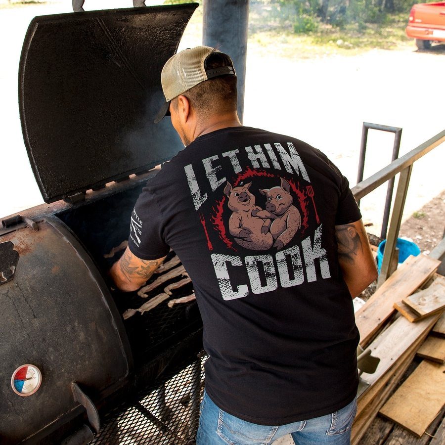 It’s simple: Let him cook. Whether you’re throwing down in the kitchen, manning the grill, or just looking for a reason to make some noise, this shirt is a guarantee that everyone knows who’s in charge of the kitchen (or the BBQ). The Let Him Cook T-Shirt in Black is a mix of good humor, great food, and a whole lotta American pride.