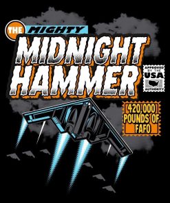 Introducing the Mighty Midnight Hammer—a full-throttle tribute to the B-2 Spirit, the baddest bird in the sky and the ultimate symbol of American air dominance. This stealth bomber doesn’t ask questions. It drops 420,000 pounds of FAFO and lets freedom do the talking.