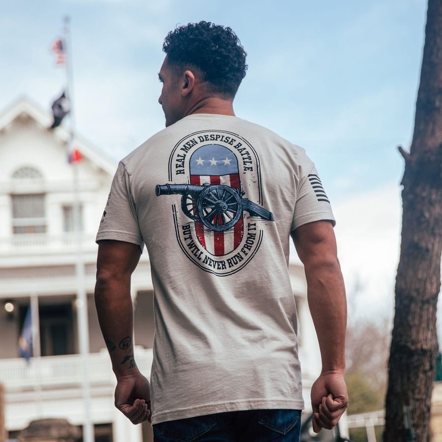“Real men despise battle, but will never run from it.” That’s not just a quote—it’s a creed. The Never Run T-Shirt in Sand is for the warriors who understand the cost of combat but never flinch when it’s time to stand their ground. Inspired by those who carry the scars of service and the weight of responsibility, this tee is all about honor, grit, and never backing down.