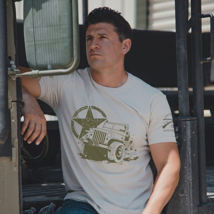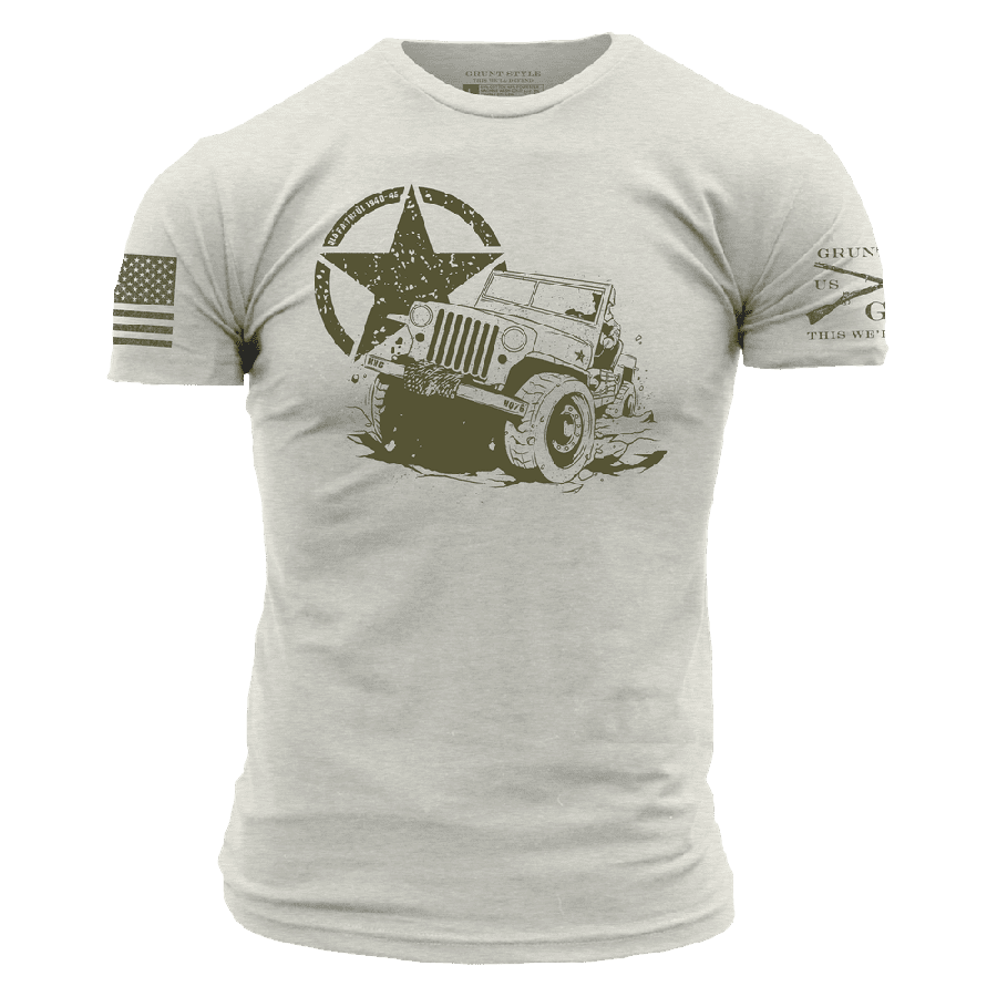 Before it was a classic, it was a workhorse of war. The Ol’ Faithful T-Shirt in Sand pays tribute to the iconic WWII 4×4—an unstoppable machine that hauled gear, troops, and glory through every brutal mile of the mission. Simple. Tough. Reliable. Just like the men behind the wheel. From muddy fields to shattered cities, this rugged ride earned its stripes the hard way. This shirt honors the steel and soul of a vehicle that became a legend—and the warriors who called it “Ol’ Faithful.”