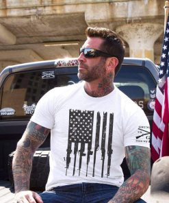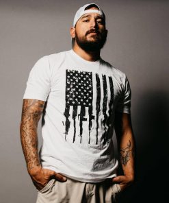 Show your American pride with this classic Grunt Style shirt design that combines two of the most beloved symbols of the United States. Whether you are at the range, out with friends, or just looking to make a patriotic statement, this gun shirt is the perfect choice. Show your support for the Second Amendment and get yours today!