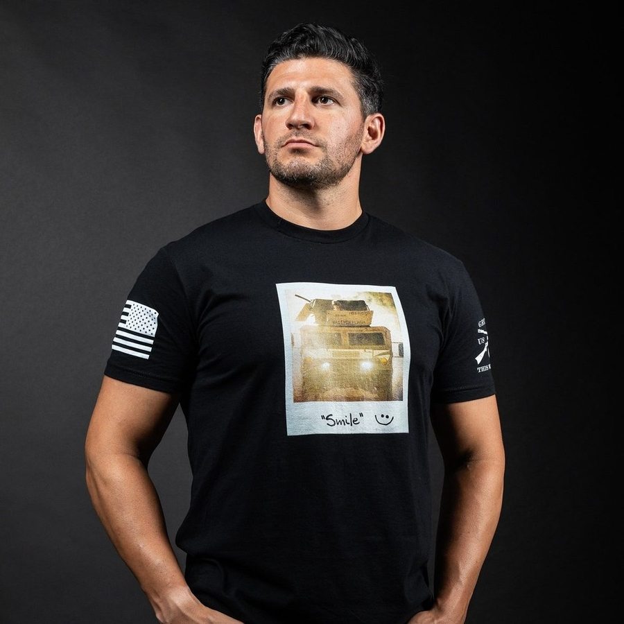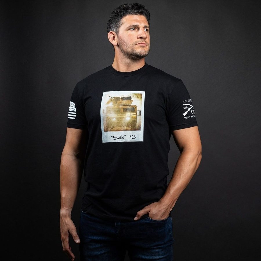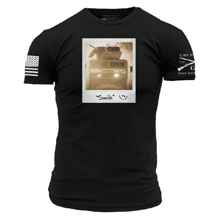 When you see that Humvee coming, you better smile—because it’s not stopping. The Smile T-Shirt in Black delivers a dark twist on the classic grin, reminding everyone that in the heat of battle, you’re the last thing they’ll see.
