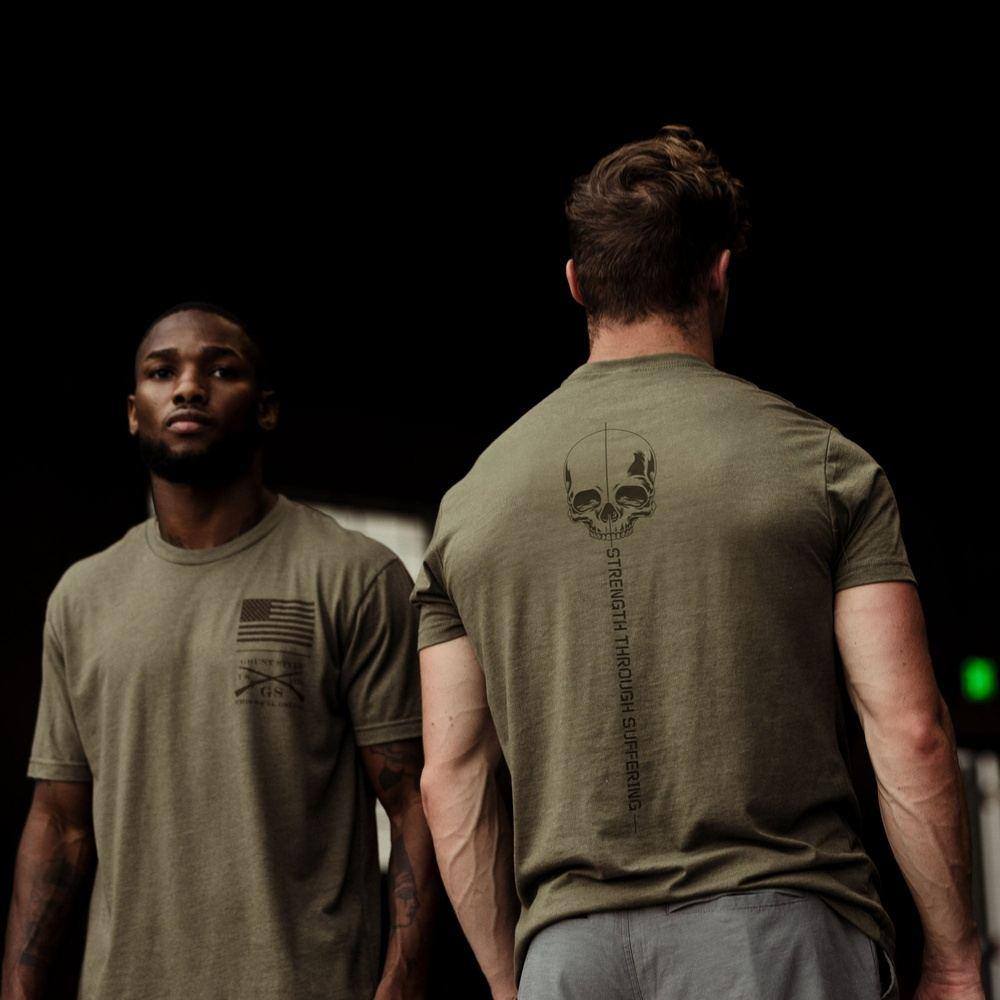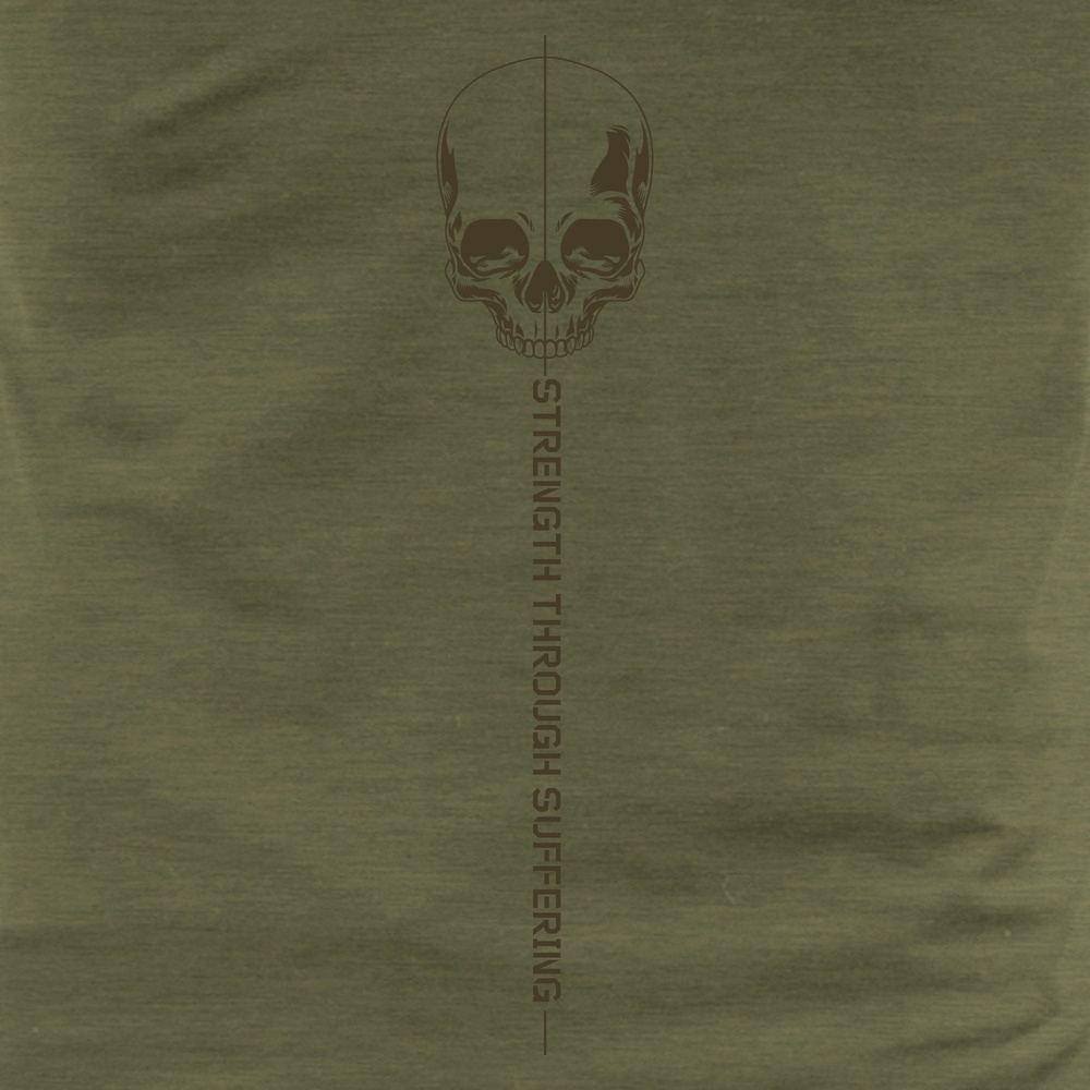 Crafted with a combination of cotton and polyester, it brings an elevated fit and maximum breathability to keep you going. Discover the motivation and strength of Grunt Style’s Strength Through Suffering Military Green Tee today!