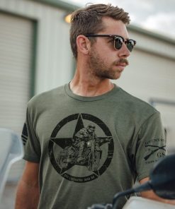 During WWII, it wasn’t just boots on the ground—it was tires in the dirt, engines roaring, and freedom riding fast. The Liberator T-Shirt in Military Green honors the iron horse that U.S. troops rode into war-torn Europe, ripping across battle lines and bringing the hammer down on tyranny.
