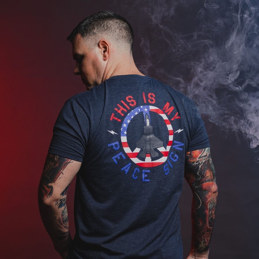 The This Is My Peace Sign T-Shirt in Midnight Navy delivers a message loud and clear—and it ain’t a group hug. This isn’t about holding hands and singing songs. It’s about protecting what’s ours with wings, weapons, and unwavering willpower. Whether you’re active duty, a veteran, or just someone who respects the roar of afterburners more than empty promises, this shirt’s got your six.