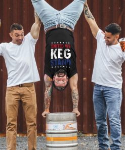 When the Founding Fathers said “United We Stand,” we’re pretty sure this is what they meant—shoulder to shoulder, ice-cold beer in hand, and someone yelling “DON’T DROP HIM!” The United We Keg Stand T-Shirt in Black is Grunt Style’s ode to legendary parties, freedom-fueled weekends, and the kind of patriotism that comes with red solo cups and zero shame.