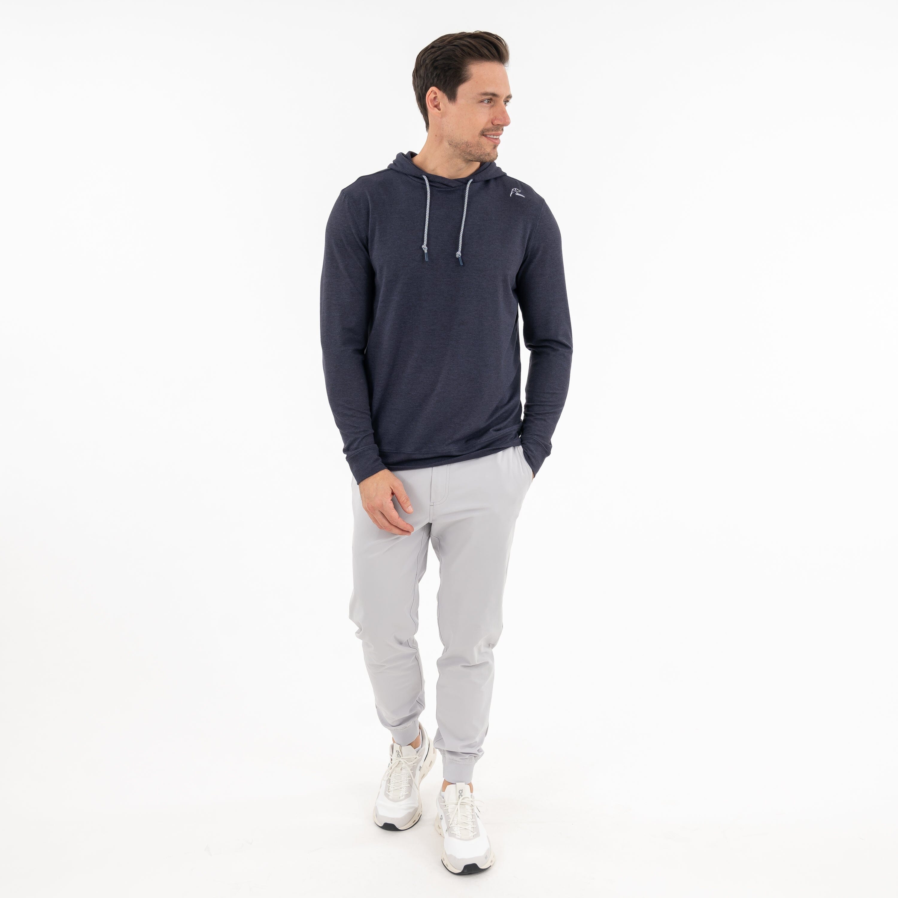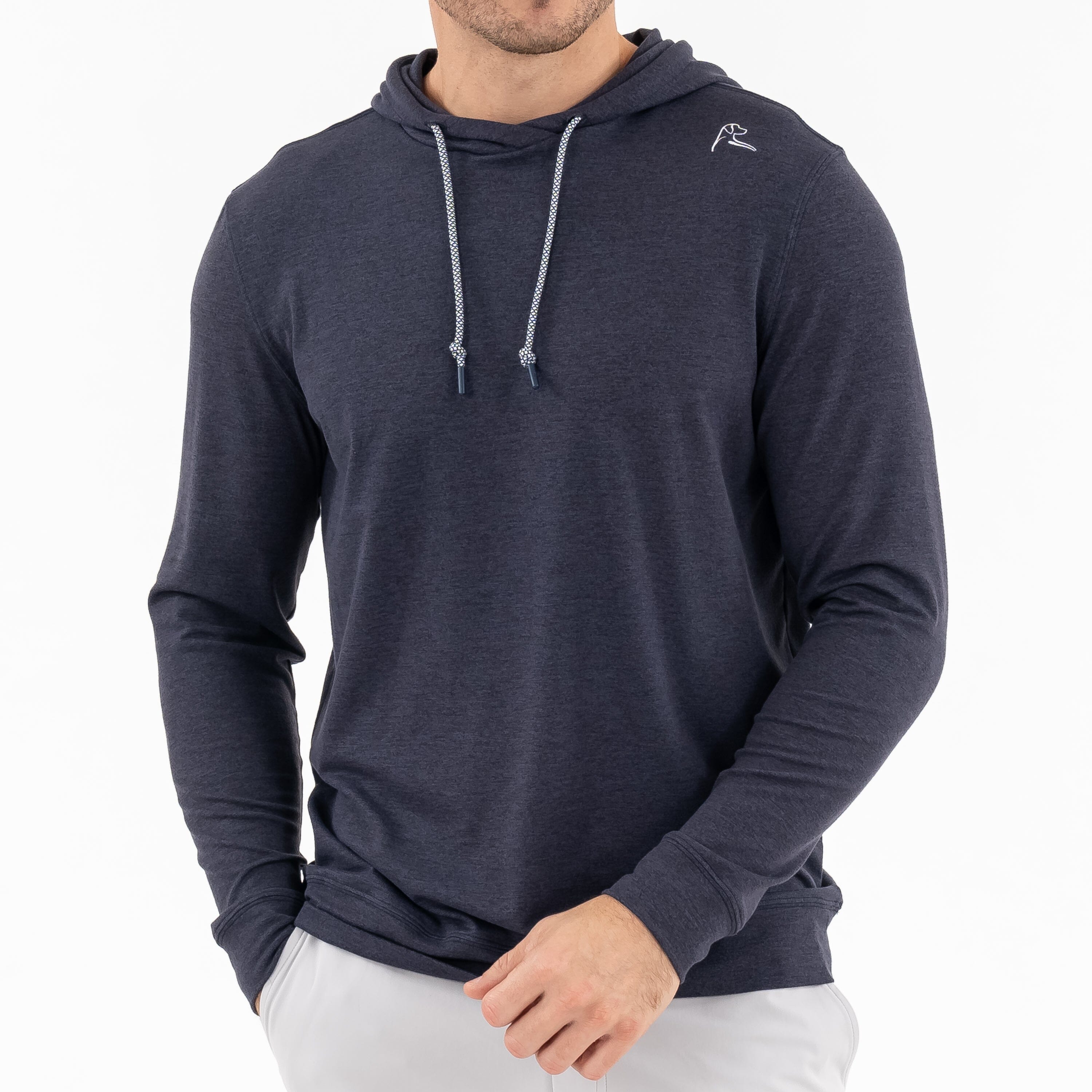 Featuring our signature VSoft⢠fabric, the Hesi Performance Hoodie is designed for comfort and built for activity. The four-way stretch technology makes it easy to move in, while the moisture-wicking and breathable fabric is meant to fit your active lifestyle. Made with incredibly soft fabric and a modern comfort fit, it easily transitions throughout the day. Finished with an embroidered dog logo on the left shoulder and a grosgrain Rhoback Ridge on the hood, this hoodie pairs great with the Delta Performance Jogger and Grit Gym Shorts.