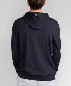 Featuring our signature VSoft⢠fabric, the Hesi Performance Hoodie is designed for comfort and built for activity. The four-way stretch technology makes it easy to move in, while the moisture-wicking and breathable fabric is meant to fit your active lifestyle. Made with incredibly soft fabric and a modern comfort fit, it easily transitions throughout the day. Finished with an embroidered dog logo on the left shoulder and a grosgrain Rhoback Ridge on the hood, this hoodie pairs great with the Delta Performance Jogger and Grit Gym Shorts.Â